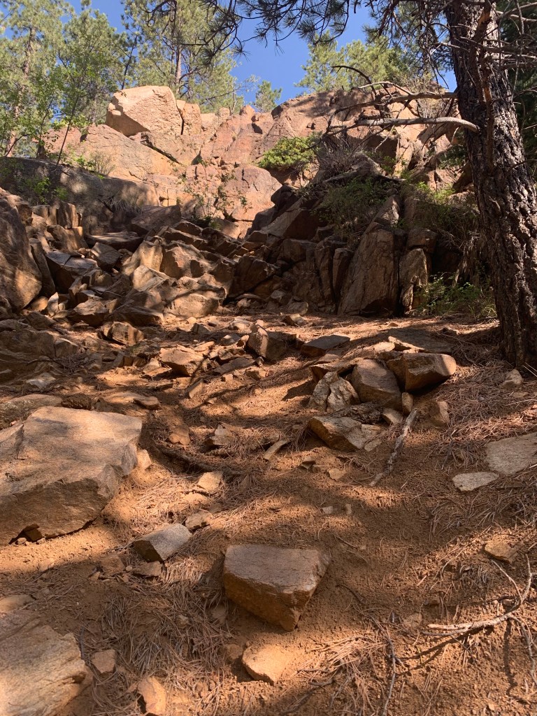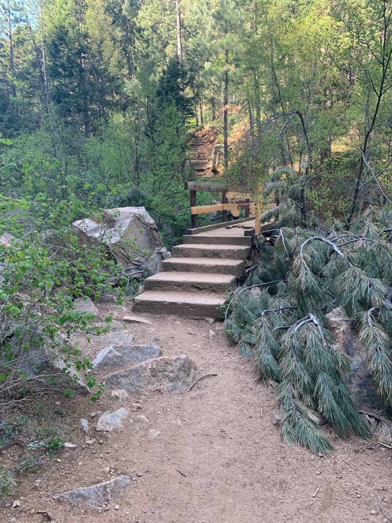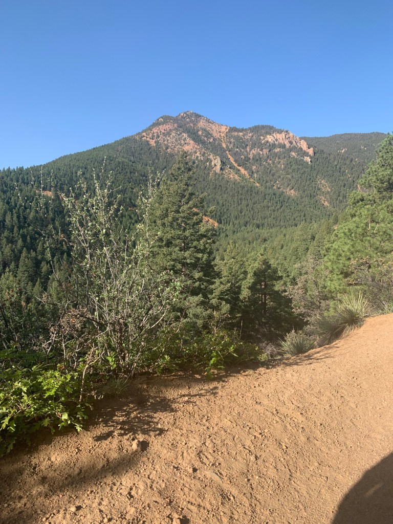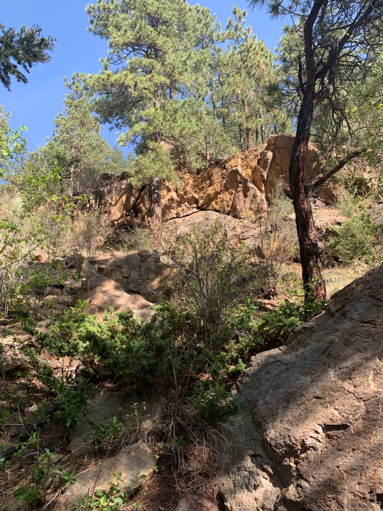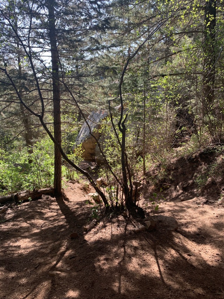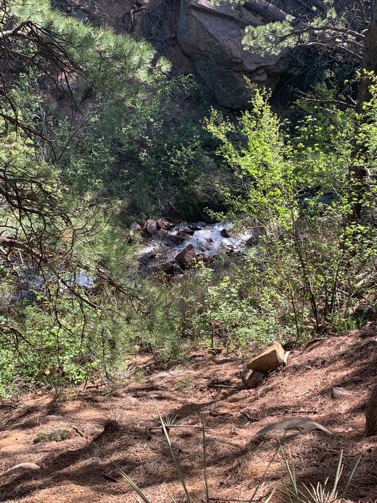 We didn’t get all the way to the top, we didn’t have the gear to get up one section so we’ll try again when we do. Overall we did about 5.5 miles and 1,000 foot elevation gain. For my fellow Coloradans or anyone who has hiked out here, we went down to Colorado Springs and did the Seven Bridges Trail. We got to all seven bridges and were headed up Kineo mountain when we had to turn back, there was a section that was just all loose gravel and gigantic rocks, so we need hiking sticks (and probably a solid 10 pounds of weight lost for each of us) to get up that section.
